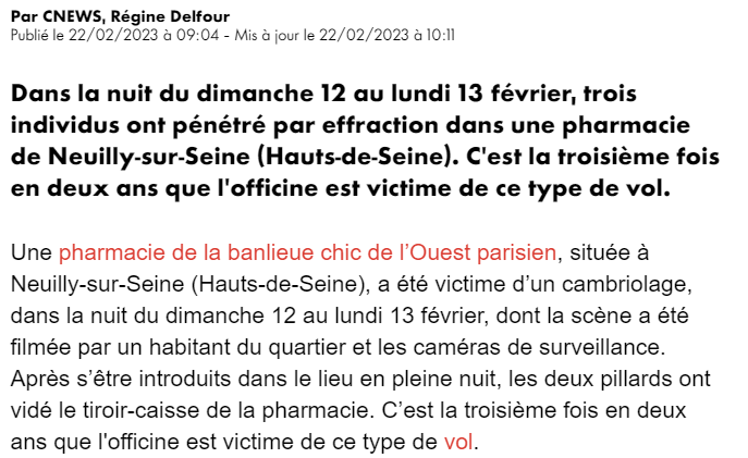 Nous sommes insuffisamment défendus face aux nouvelles menaces : bandes violentes extérieures à Neuilly semant la terreur aux sorties des lycées pour s’assurer du contrôle de trafic de stupéfiants, trafics de drogue itinérants « Uber-shit » directement dans les appartements, nouvelle génération de professionnels multicartes, pratiquant cambriolages, home-jacking ultra-violents, vols de montres, viols et agressions sexuels sur la voie publique.